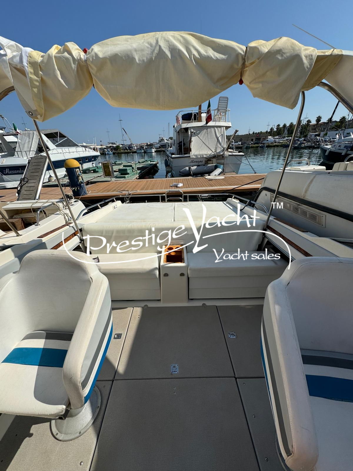 | Allarme motore, Autoclave, 03 Batterie, Caricabatterie, Doccia esterna, Flap idraulici, Impianto antincendio, Luci di cortesia, Piattaforma, 02 Pompa di sentina automatica, Porta di ingresso, Presa 220V banchina, Rollbar, Salpa ancora elettrico, Scaletta da bagno, Tromba