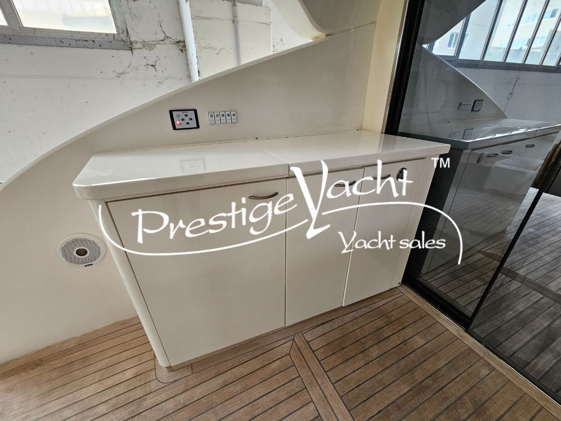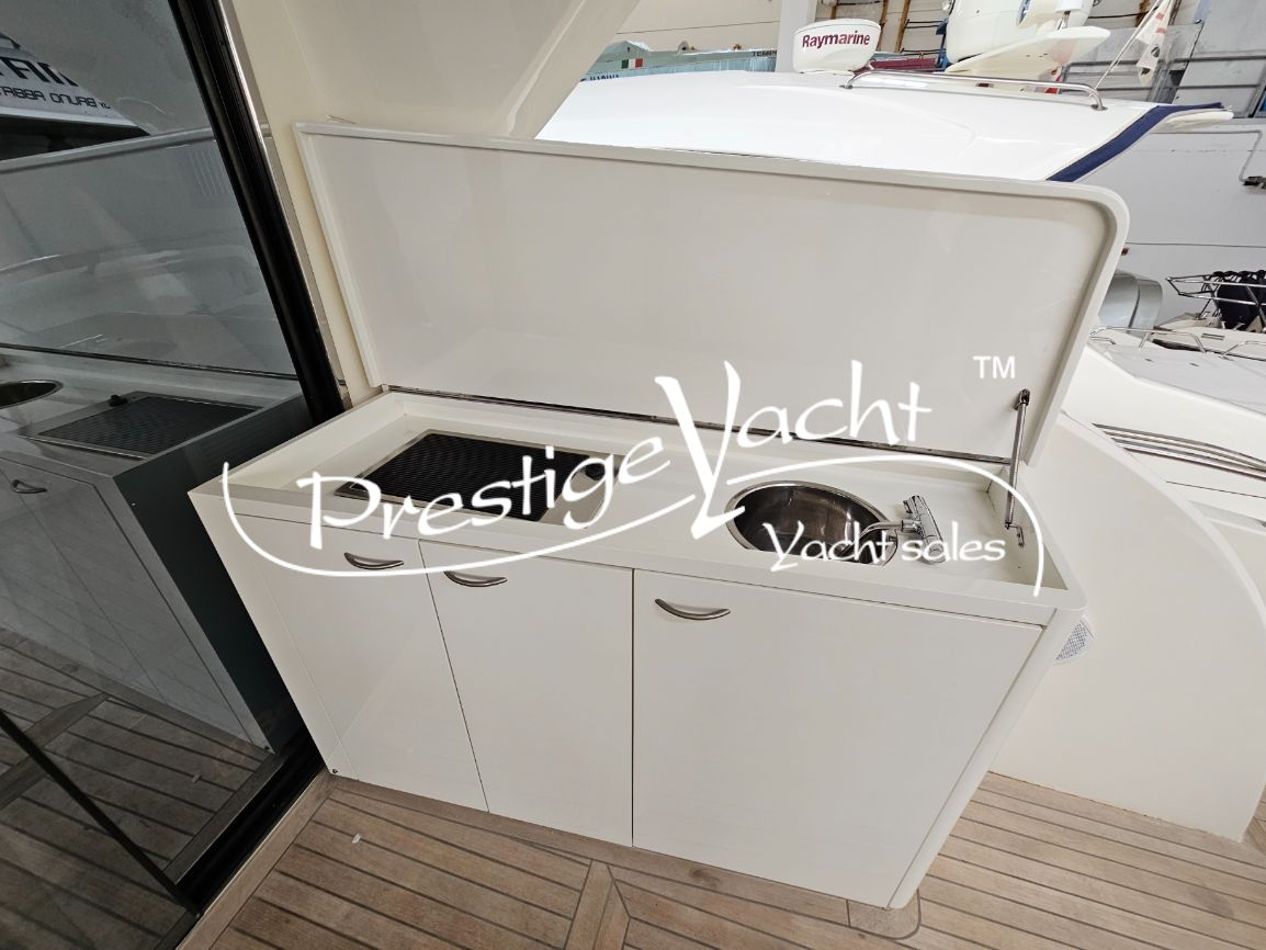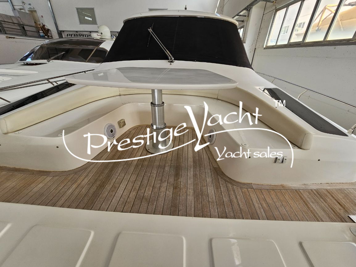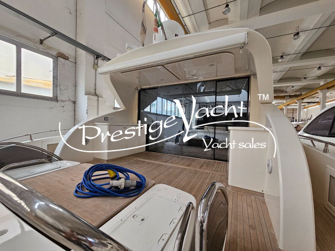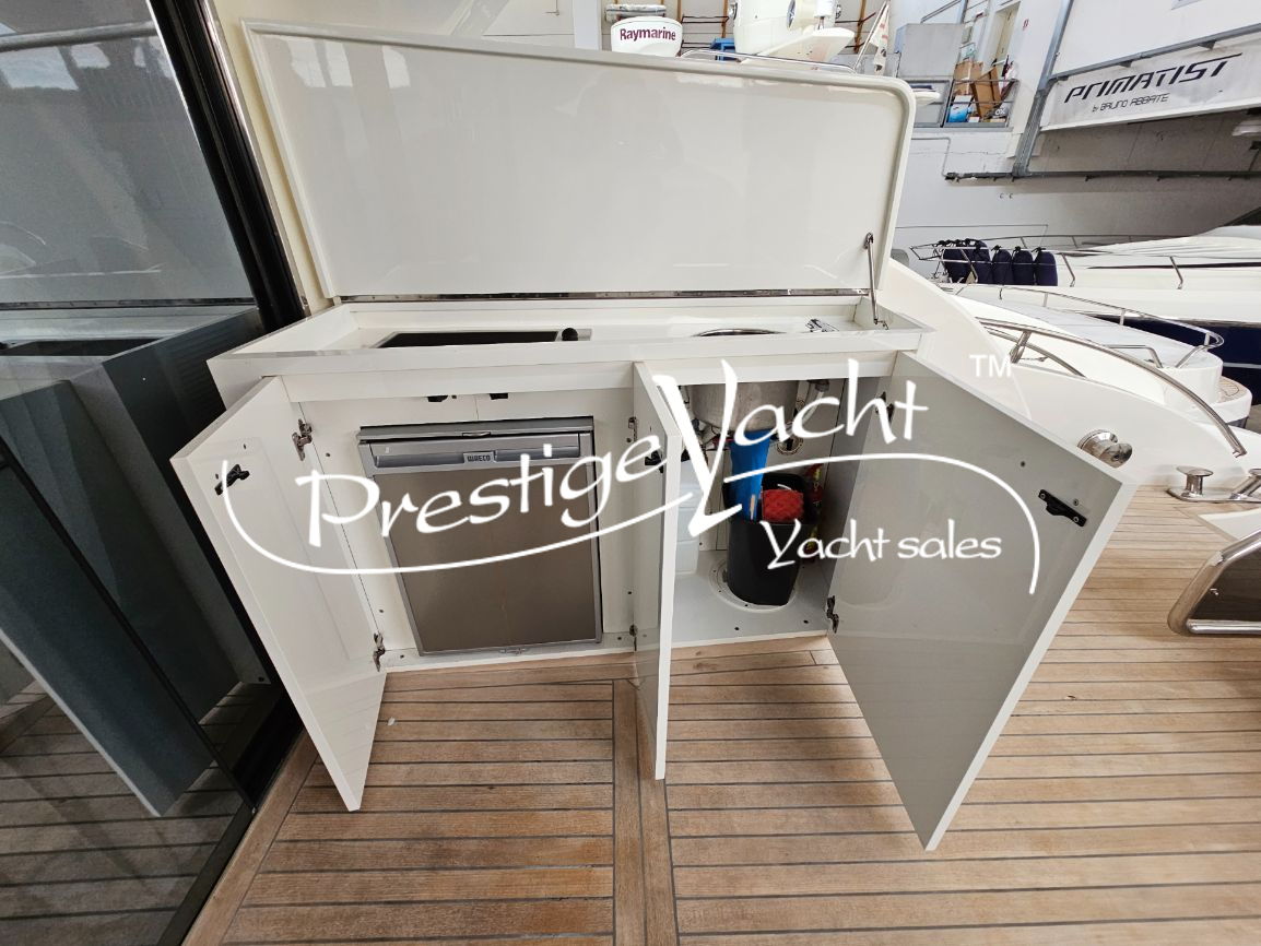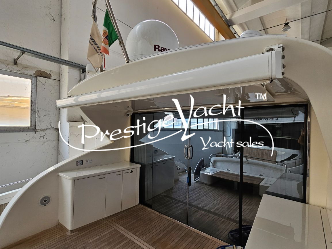| Allarme motore, Allarme sentina, Autoclave, Camminamenti laterali in teak, 2 Caricabatterie, Doccia esterna, Elica di poppa, Elica di prua, Faro orientabile, Flap elettrici (intruder Volvo Penta), Garage per tender, Hard Top, Impianto antincendio, Indicatori flaps, Lavaggio catena, Luci di cortesia, Luci subacquee, Passerella (idraulica a scomparsa), Piattaforma, 5 Pompa di sentina automatica, 2 Pompa di sentina elettrica, Porta di ingresso, Pozzetto in teak, Presa 220V banchina, Presa acqua banchina, Rollbar, Salpa ancora elettrico, Scaletta da bagno, Tavolo in pozzetto (a sollevamento idraulico), Tender, 2 Winch tonneggio di poppa, Winch tonneggio di prua