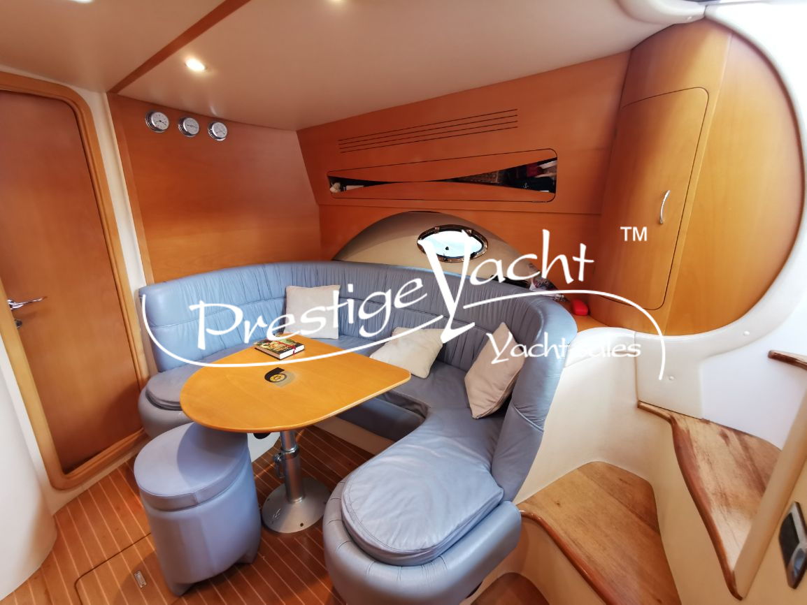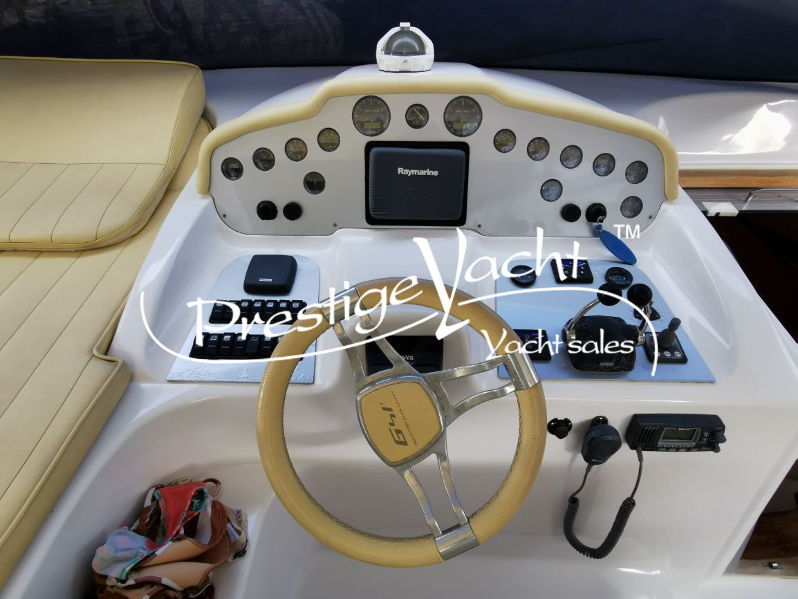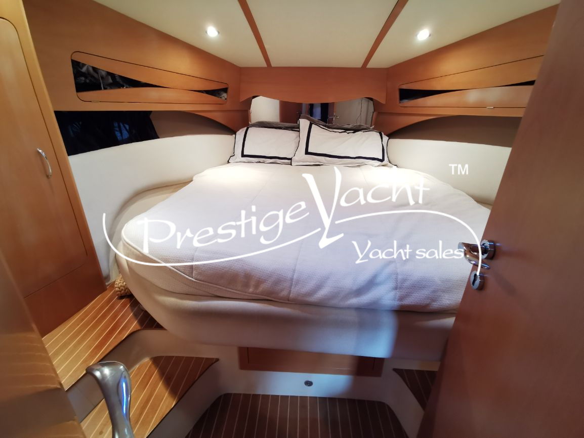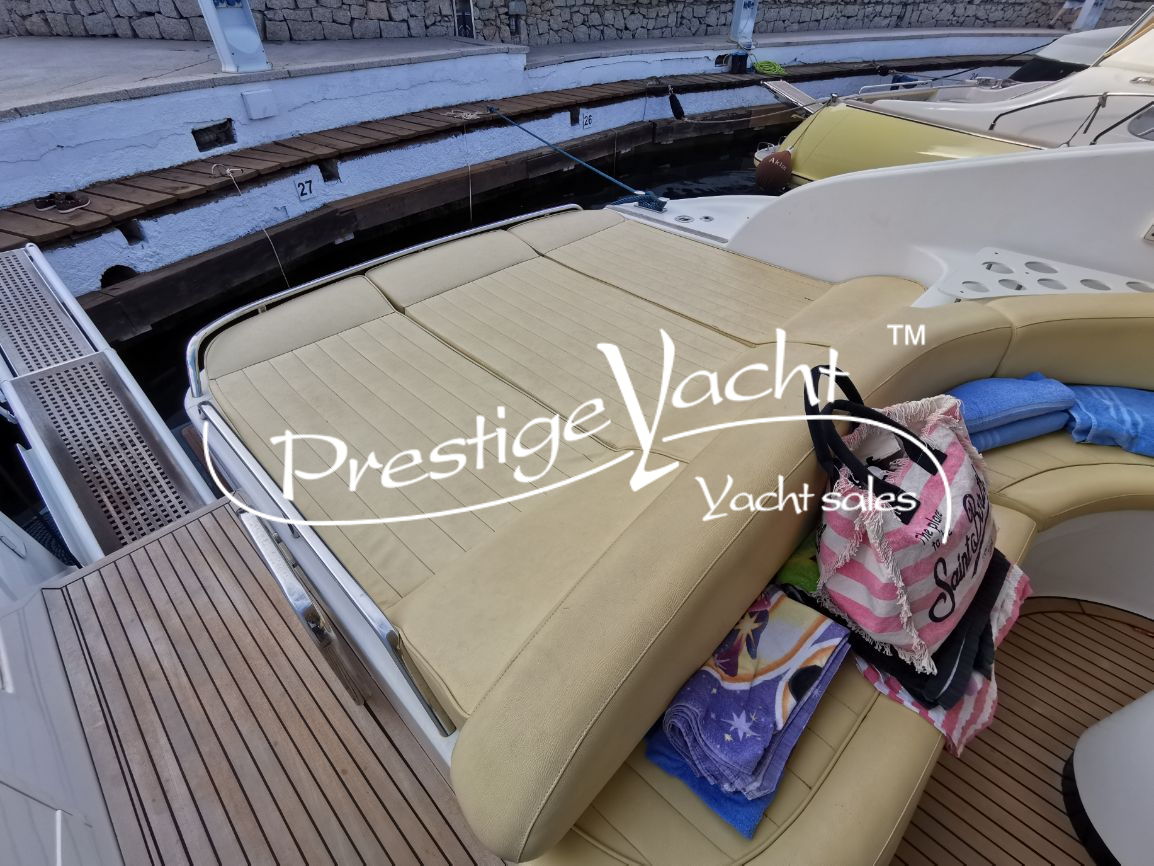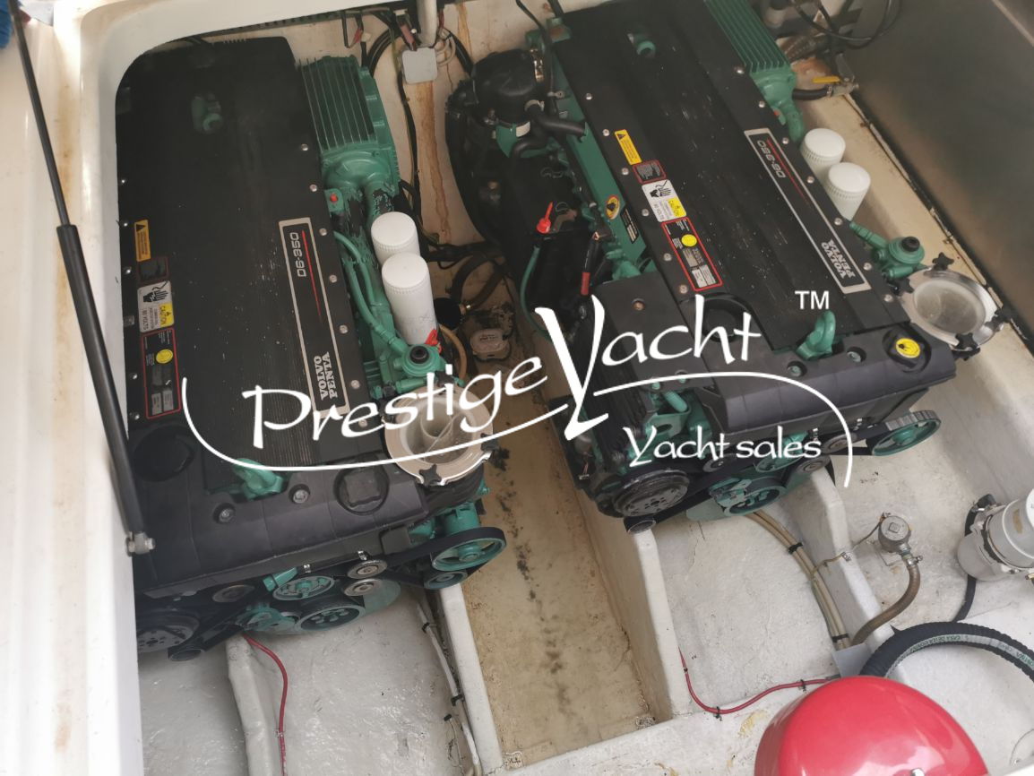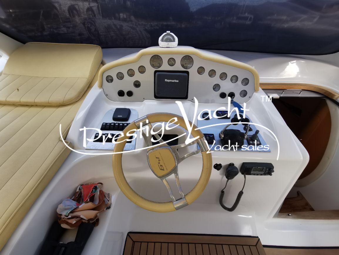 | Condizioni ottime, nel 2018 eseguito i seguenti lavori: sostituito vetri hard-top, verniciatura tavolo e parti esterne mobili, lucidatura totale, cappottine e tendalini nuovi, motore climatizzazione nuovo, riser e collettori di scarico nuovi, nel 2019 tappezzerie interne nuove e revisione piedi poppieri, nel 2020 sostituzione teak in massello pozzetto e turbine motori nuove, generatore Dynamica revisionato a zero ore, sempre tagliandata Volvo Penta. Nel 2022 verniciature murate Blue in awl grip, lucidatura scafo e coperta, sostituzione teak di poppa. Ottime condizioni.