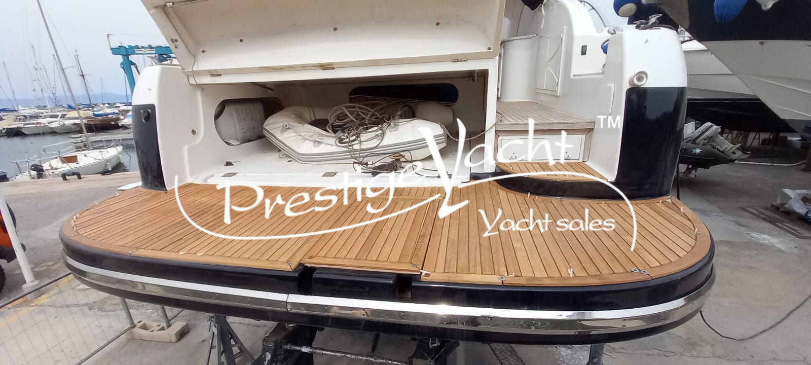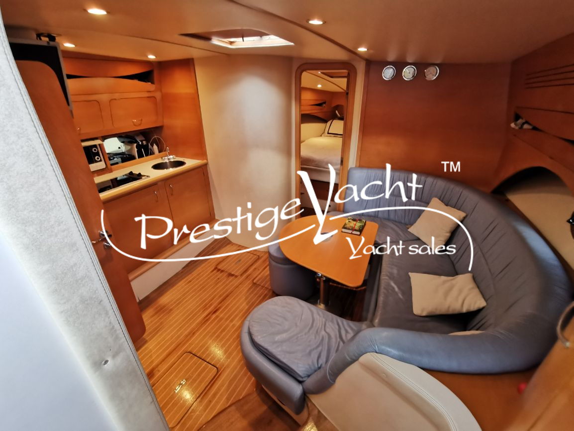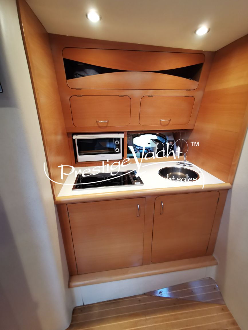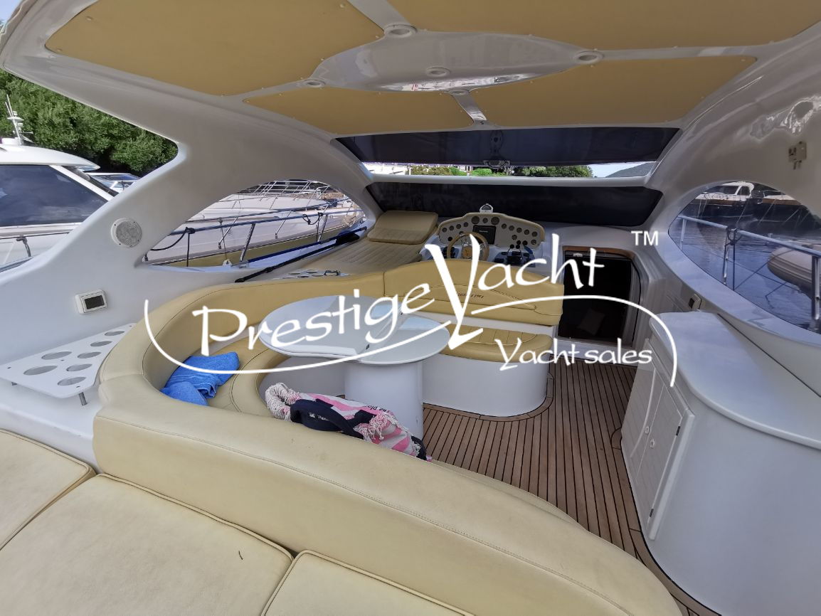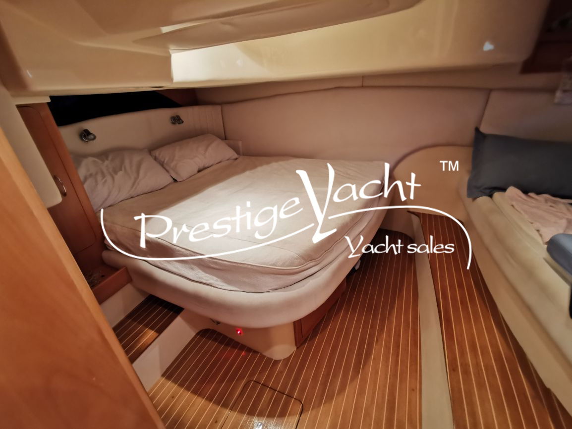 | Condizioni ottime, nel 2018 eseguito i seguenti lavori: sostituito vetri hard-top, verniciatura tavolo e parti esterne mobili, lucidatura totale, cappottine e tendalini nuovi, motore climatizzazione nuovo, riser e collettori di scarico nuovi, nel 2019 tappezzerie interne nuove e revisione piedi poppieri, nel 2020 sostituzione teak in massello pozzetto e turbine motori nuove, generatore Dynamica revisionato a zero ore, sempre tagliandata Volvo Penta. Nel 2022 verniciature murate Blue in awl grip, lucidatura scafo e coperta, sostituzione teak di poppa. Ottime condizioni.