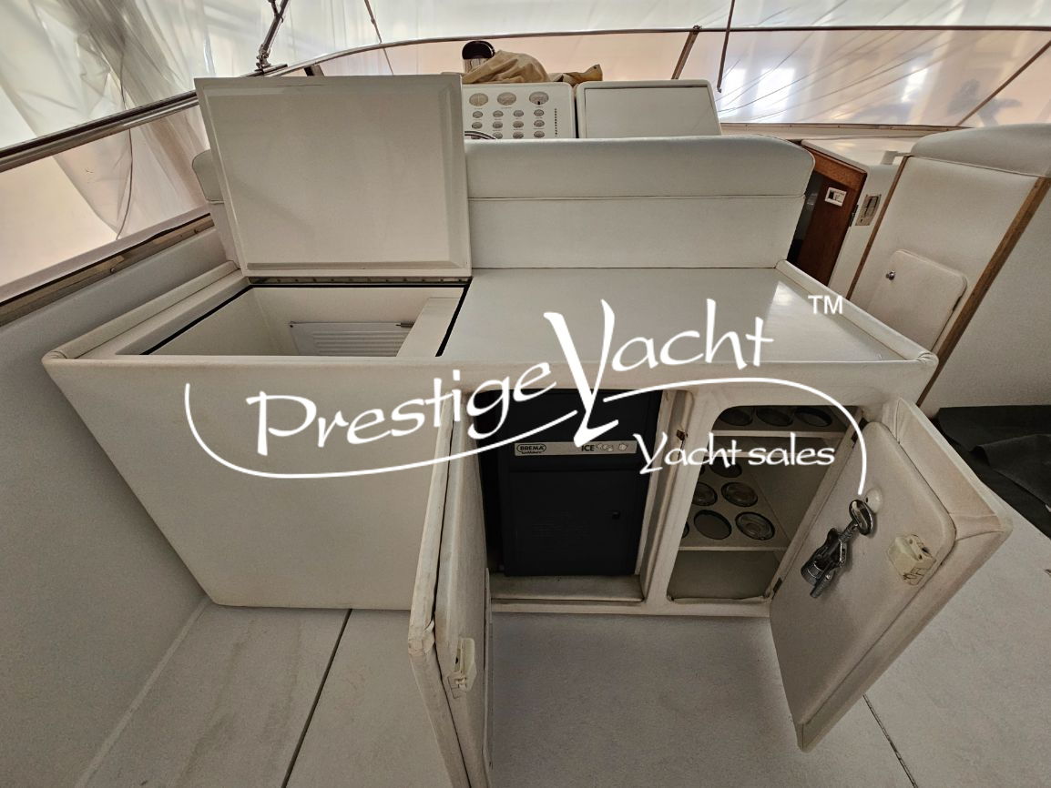 | Allarme motore, Autoclave, Caricabatterie, Doccia esterna, Flap idraulici, Impianto antincendio, Indicatori flaps, Luci di cortesia, Passerella, Piattaforma, 4 Pompa di sentina automatica, Pompa di sentina manuale, Porta di ingresso, Presa 220V banchina, Rollbar, Salpa ancora elettrico, Scaletta da bagno, Tavolo in pozzetto, Tender, Tromba, Winch tonneggio di prua