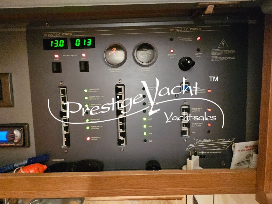 | Boiler, Clima reversibile, Impianto acque nere, Prese interne 12V, Prese interne 220V, 02 Wc marino elettrico