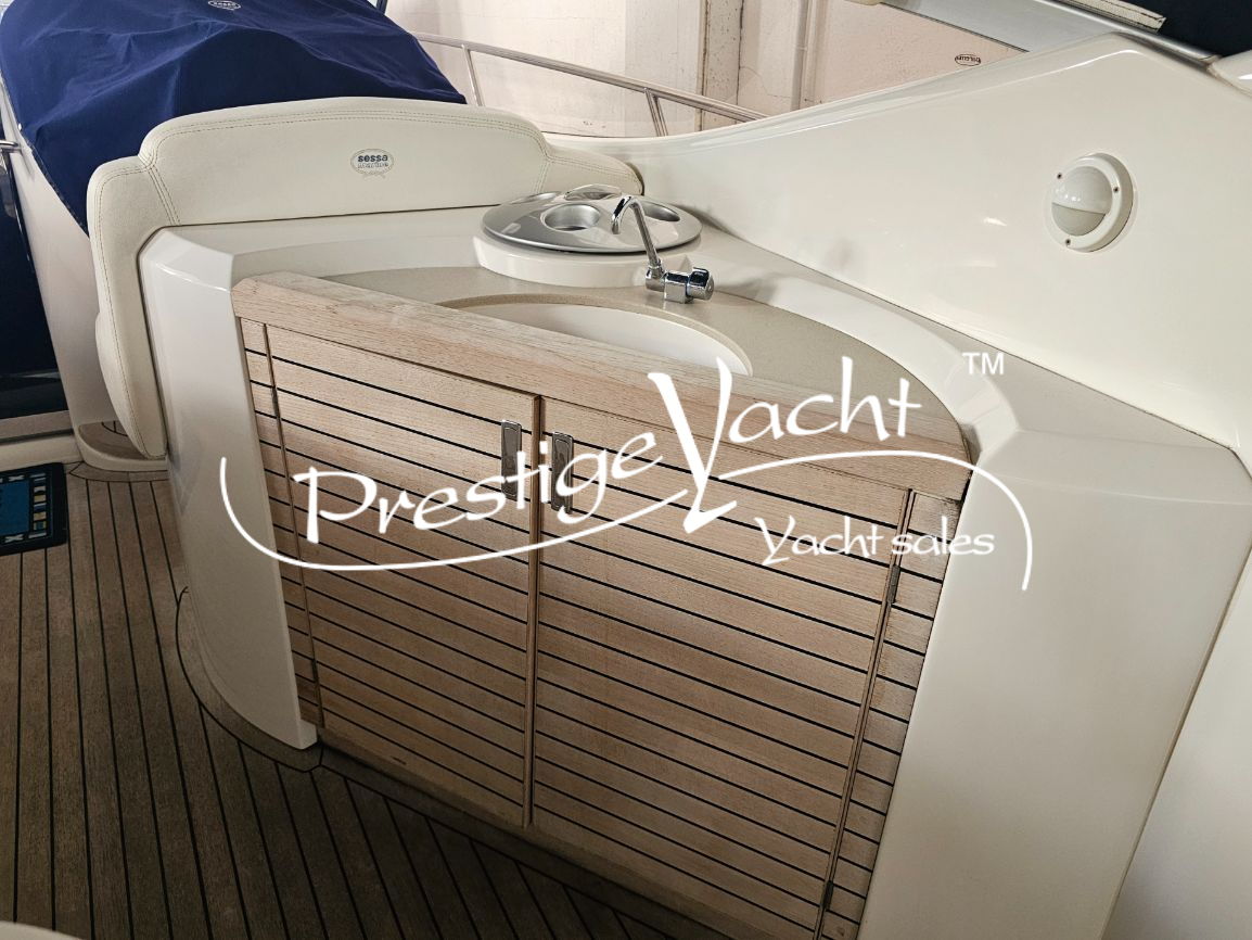 | Allarme motore, Ancora, Autoclave, Caricabatterie, Doccia esterna, Elica di prua, Flap idraulici, Impianto antincendio, Luci di cortesia, Passerella (idraulica), Piattaforma, 03 Pompa di sentina automatica, Pompa di sentina manuale, Porta di ingresso, Presa 220V banchina, Rollbar, Salpa ancora elettrico, Scaletta da bagno, Tavolo in pozzetto, Tromba, Winch tonneggio di prua