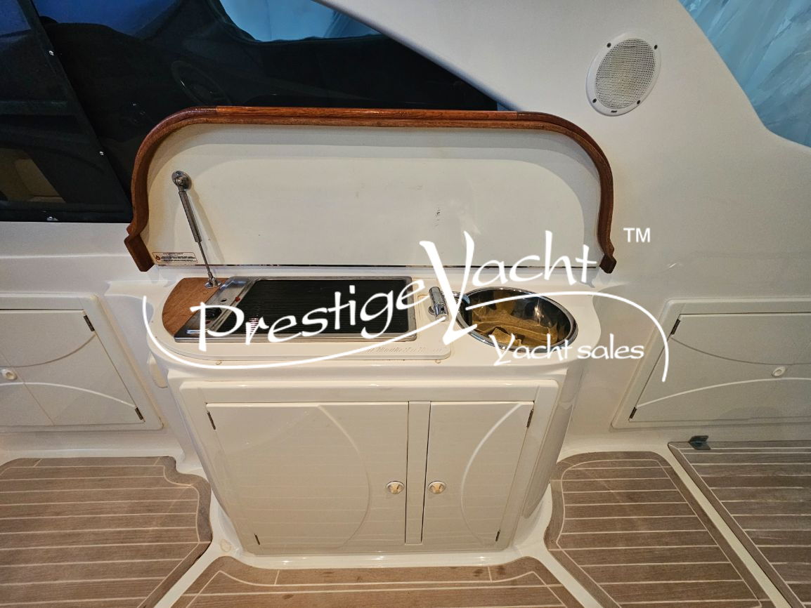 | Allarme motore, Autoclave, Caricabatterie, Doccia esterna, Elica di prua, Faro orientabile, Flap idraulici, Hard Top, Impianto antincendio, Indicatori flaps, Luci di cortesia, Passerella (idraulica a scomparsa), Piattaforma, 3 Pompa di sentina automatica, Pompa di sentina manuale, Porta di ingresso, Pozzetto in teak, Presa 220V banchina, Rollbar, Salpa ancora elettrico, Scaletta da bagno, Tavolo in pozzetto, Tromba