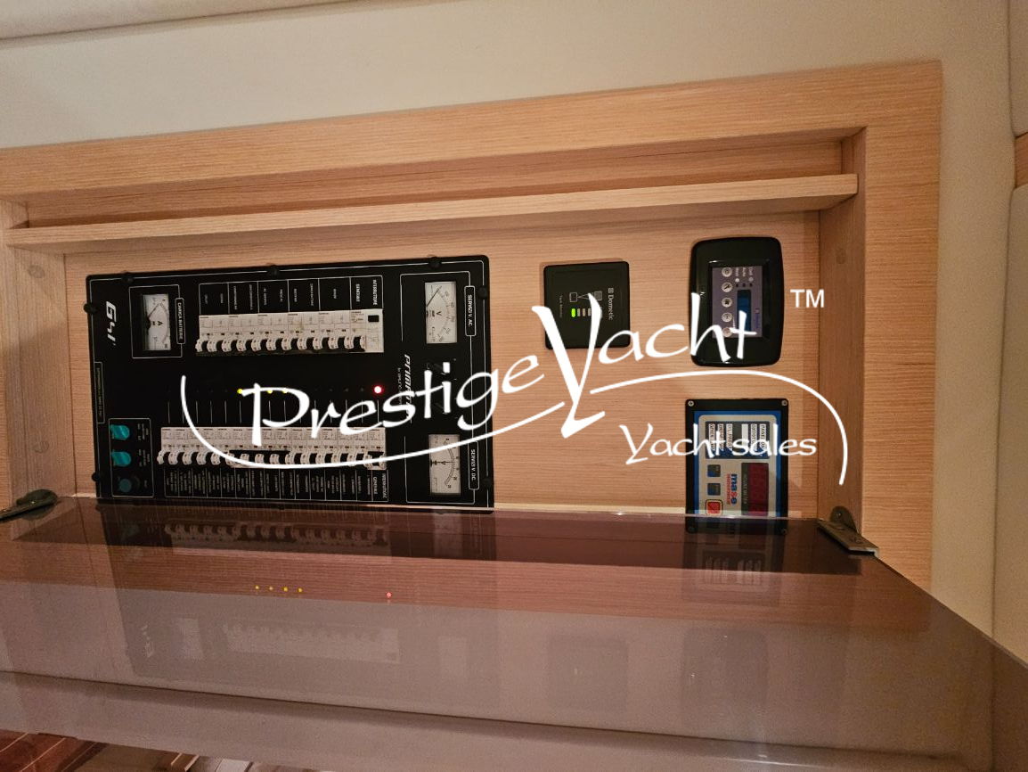 | Angolo barra, Bussola, Comando motori elettronico, Contamiglia, DSC vhf, Ecoscandaglio, GPS, Joystick (di manovra Volvo Penta), Plotter, Radio VHF