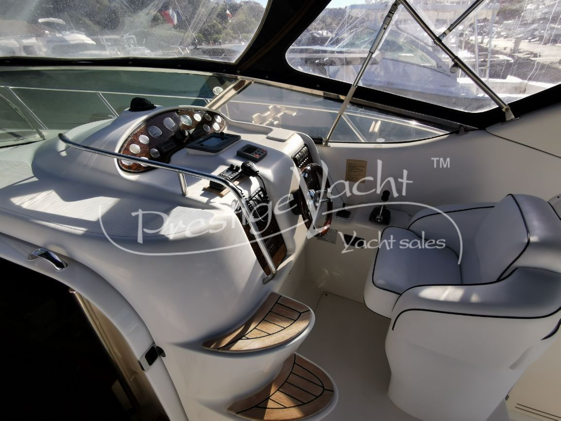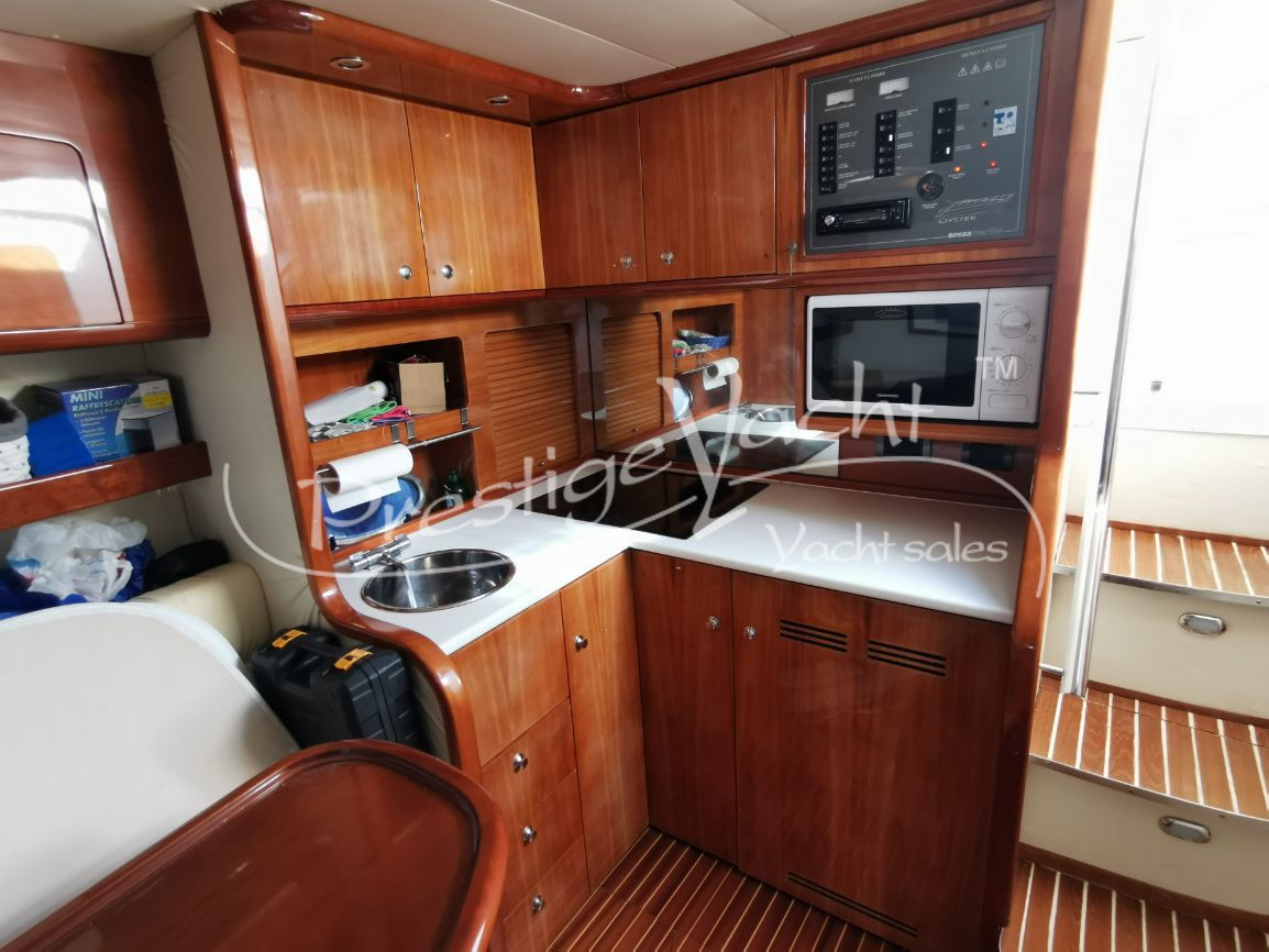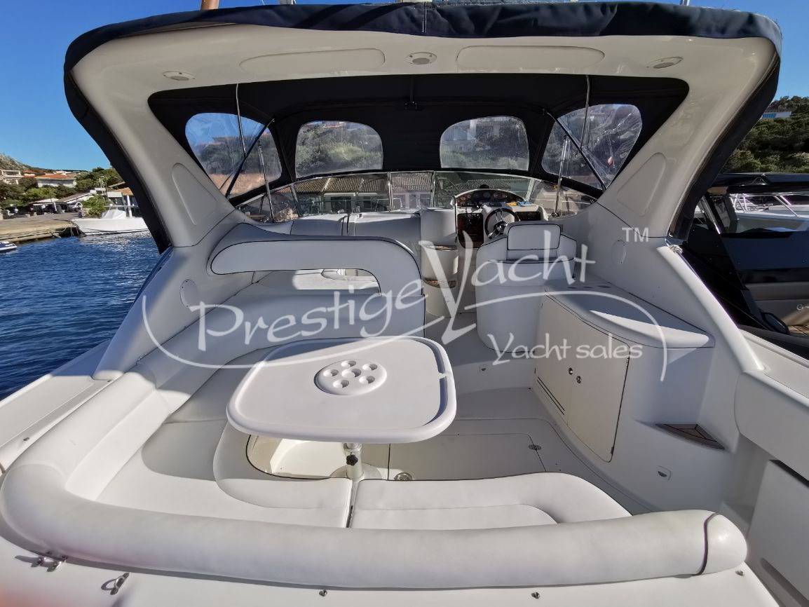 | Allarme motore, Autoclave, Caricabatterie, Doccia esterna, Elica di prua, Faro orientabile, Flap idraulici, Impianto antincendio, Indicatori flaps, Luci di cortesia, Passerella (idraulica), Piattaforma, 3 Pompa di sentina automatica, Pompa di sentina manuale, Porta di ingresso, Presa 220V banchina, Rollbar, Salpa ancora elettrico, Scaletta da bagno, Tavolo in pozzetto