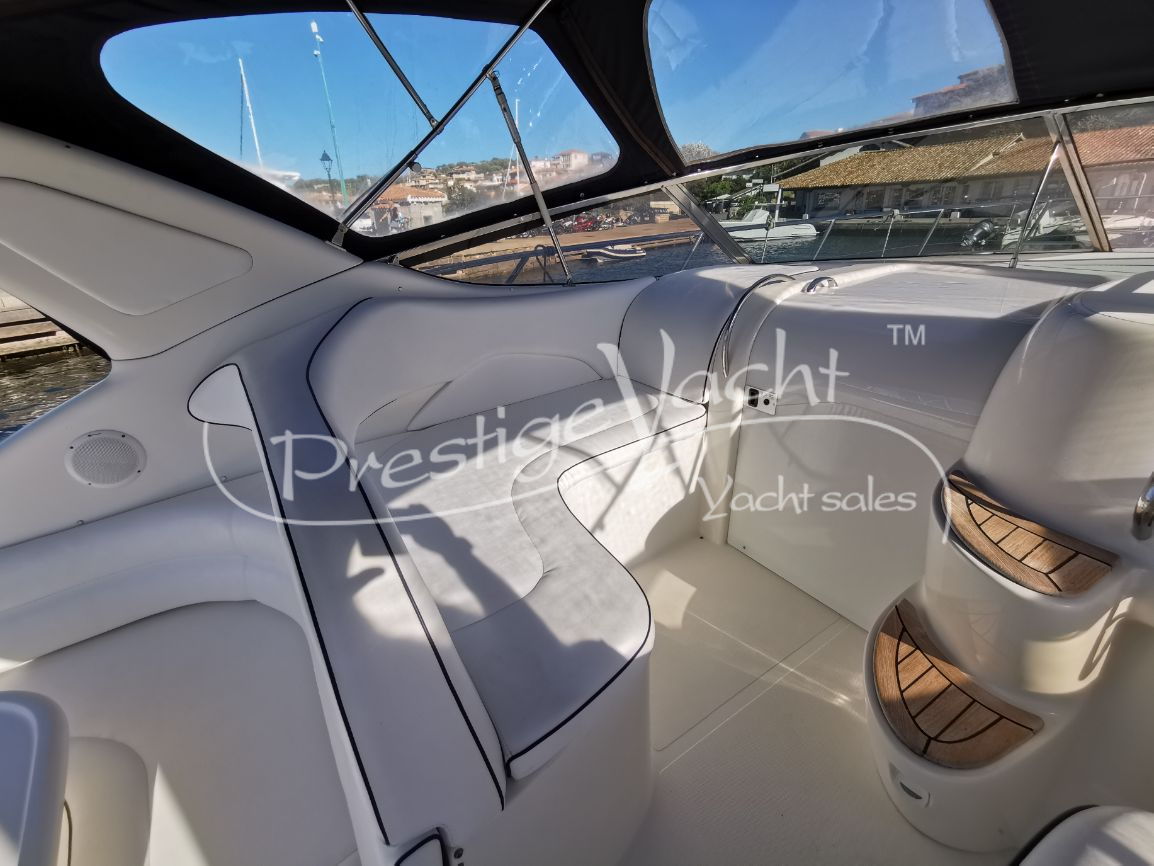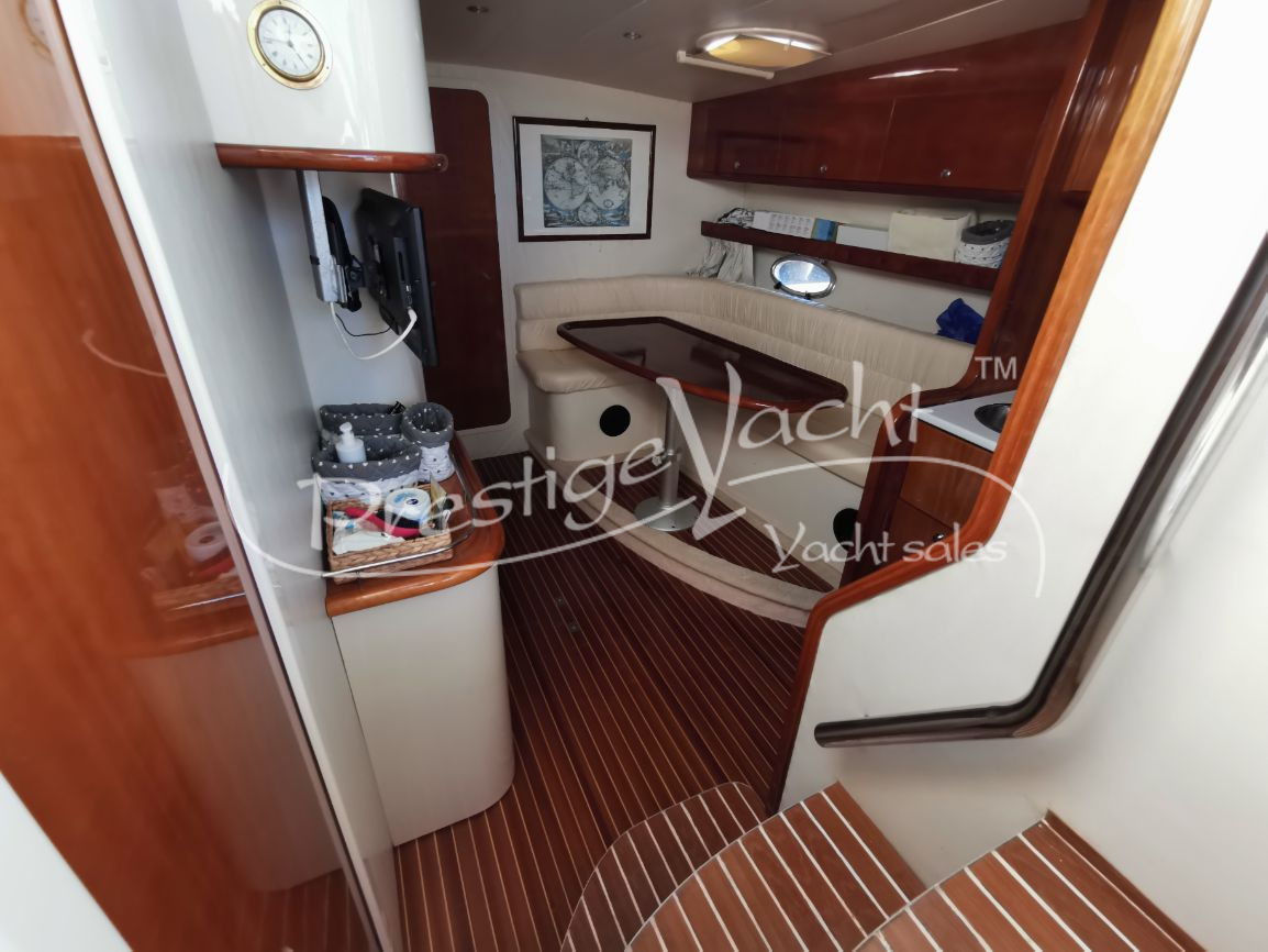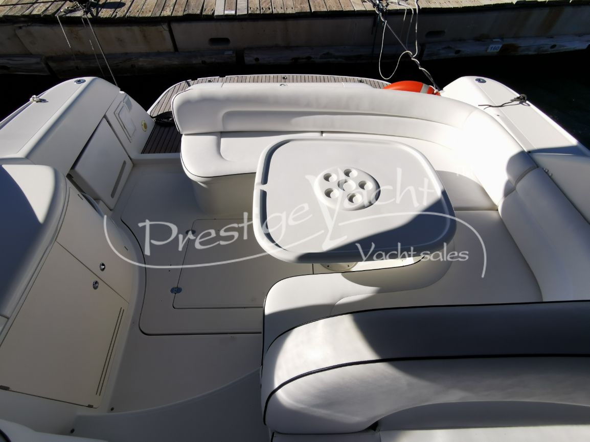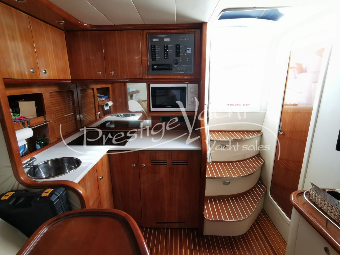 | Allarme motore, Autoclave, Caricabatterie, Doccia esterna, Elica di prua, Faro orientabile, Flap idraulici, Impianto antincendio, Indicatori flaps, Luci di cortesia, Passerella (idraulica), Piattaforma, 3 Pompa di sentina automatica, Pompa di sentina manuale, Porta di ingresso, Presa 220V banchina, Rollbar, Salpa ancora elettrico, Scaletta da bagno, Tavolo in pozzetto