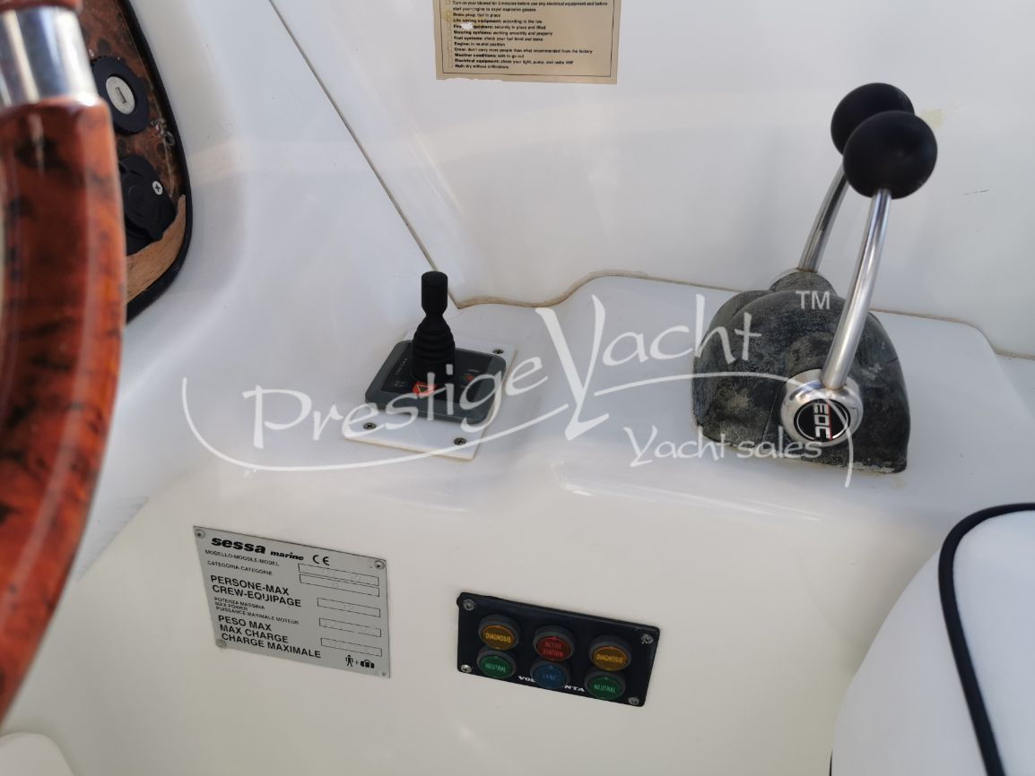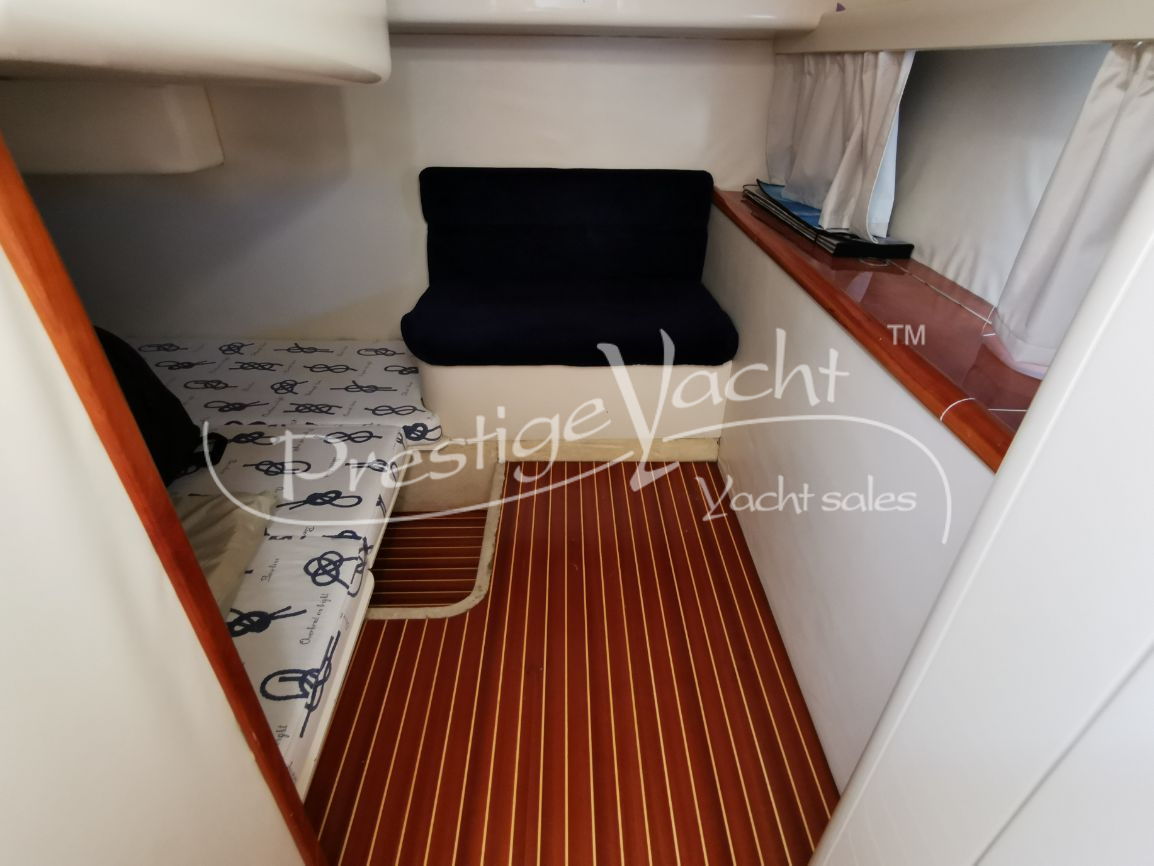 | Condizioni buone, primo varo e vendita anno 2000, cuscinerie esterne nuove, tendalini di chiusura invernali, freschiera di poppa, nel 2024 lucidatura totale scafo e cuscinerie esterne nuove. Necessita di sostituzione plexiglass portellino centrale parabrezza e ripristinare infiltrazione di acqua da pattino in carena. La barca viene venduta nello stato di fatto in cui si trova. |